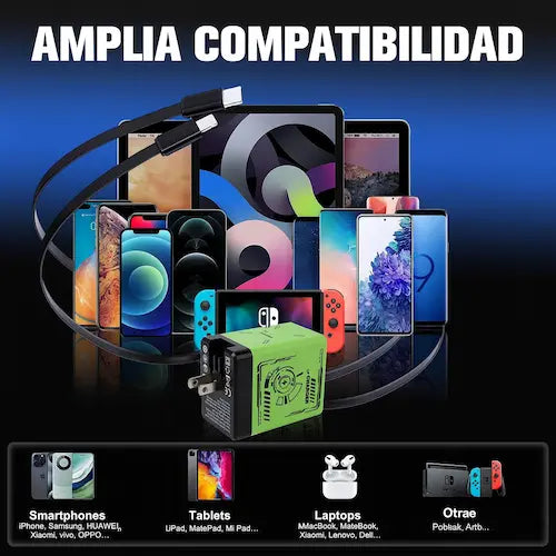 AHORRA $82.000Cargador GaN Flash Doble Puerto 120W (Nitruro de Galio)