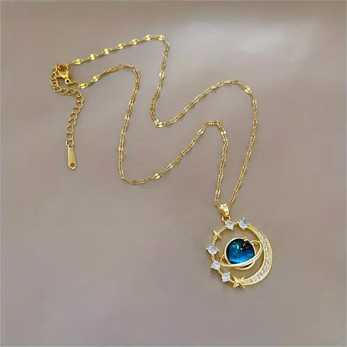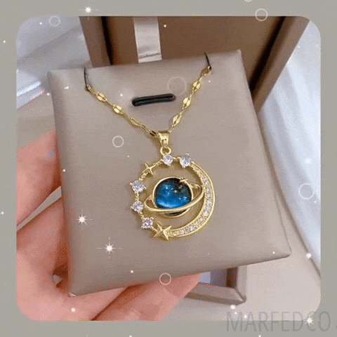 Inspírate en la majestuosidad de los anillos de Saturno con este collar elaborado artesanalmente en Acero al Titanio , bañado en oro de 10k y detalles en circonitas brillantes. Cada pieza refleja horas de trabajo minucioso para capturar la esencia de lo infinito.