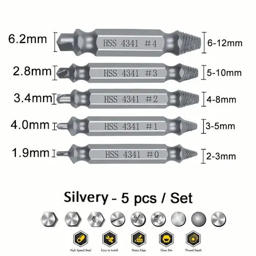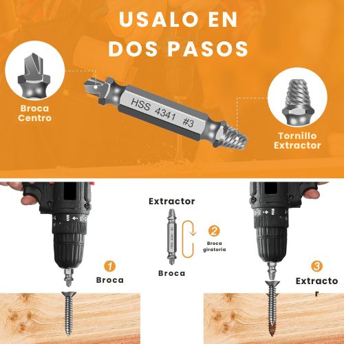 🔧 Incluye 5 extractores de diferentes tamaños: ideal para todo tipo de tornillos.