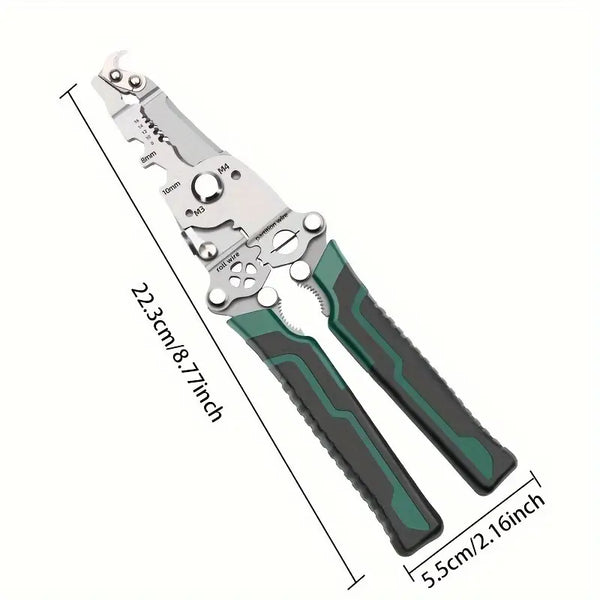 Esta herramienta es perfecta para aquellos que buscan funcionalidad y rendimiento, Su diseño multifuncional permite cortar, pelar y ponchar cables de manera eficiente, simplificando tareas complejas.