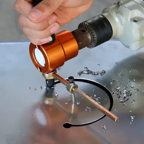 Con METALCUT 360™, no necesitas experiencia ni herramientas caras. Corta círculos, formas irregulares o líneas rectas sobre láminas metálicas y más — rápido, limpio y sin rebabas.