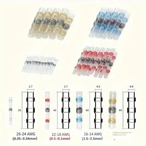 ⚙️Calibres: AWG 26‑24, 22‑18, 18‑16, 16‑14, 12‑10.